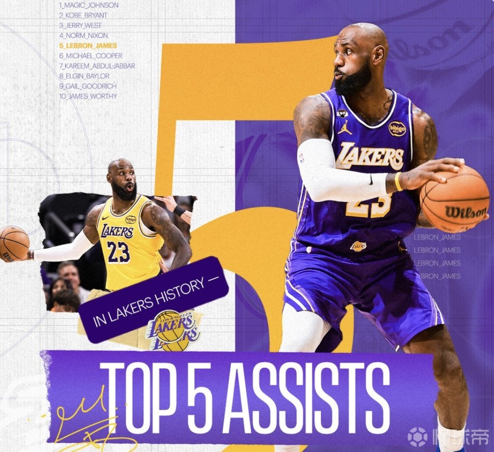 全场比赛结束后,詹姆斯湖人生涯总助攻数来到3669次。