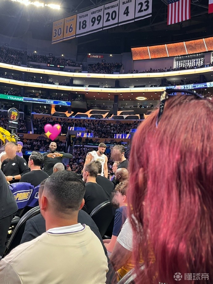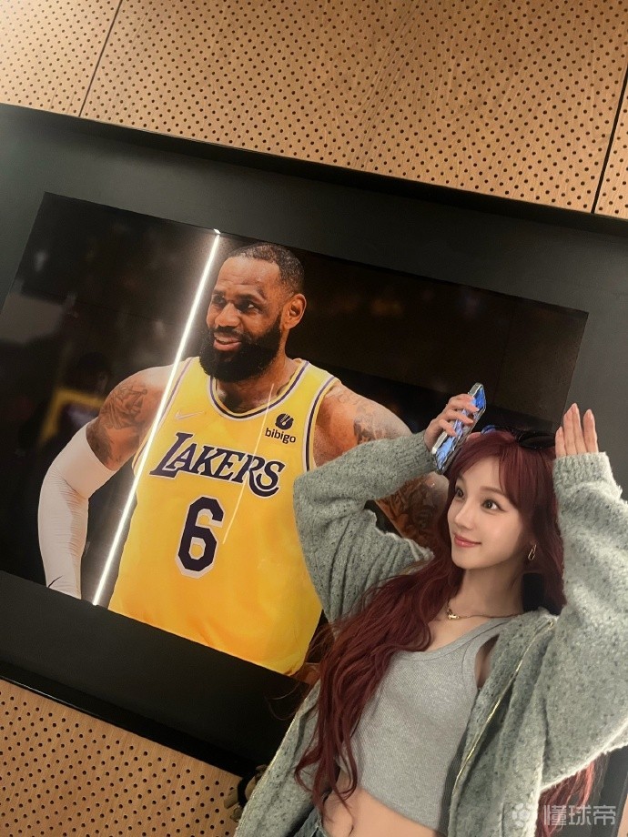 女星宋雨琦现场观战湖人,为詹姆斯应援打call,收获老詹比心