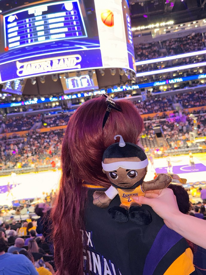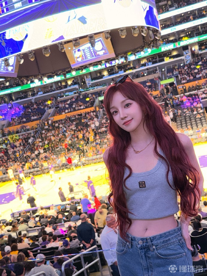 3月2日,国内知名女子偶像宋雨琦前往洛杉矶湖人队的主场,为湖人队加油,为自己的偶像詹姆斯助威。