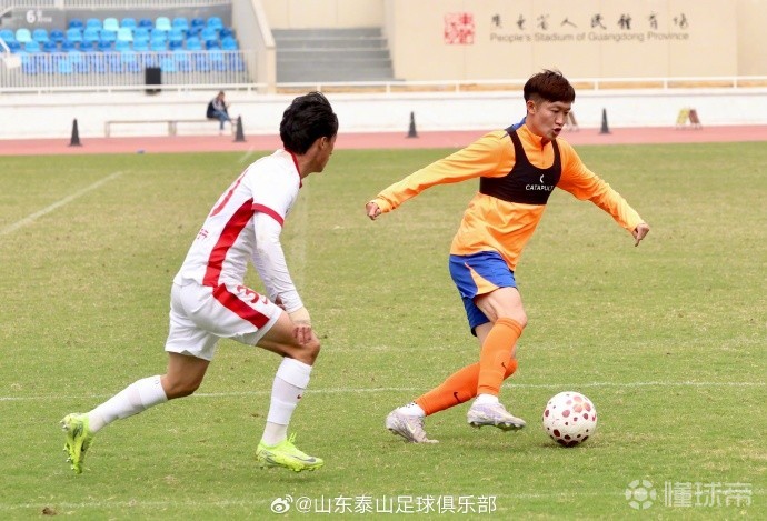 今天上午11点,山东泰山队与长春亚泰队在广州进行冬训热身赛。