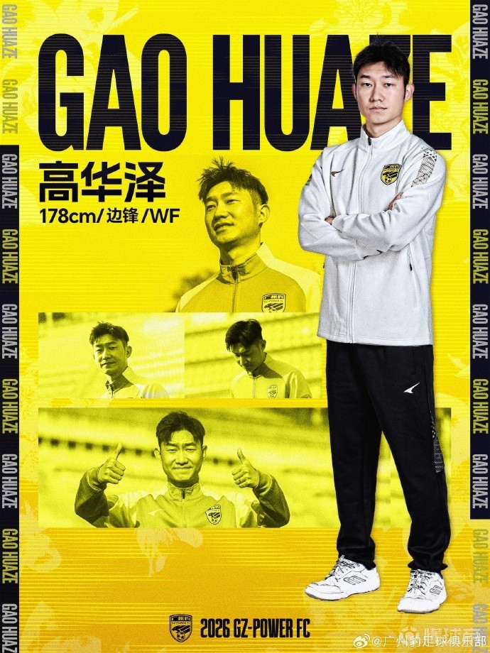 广州豹大家庭欢迎高华泽的到来!作为一名正值当打之年的前场攻击手,他在中超、中甲赛场拥有累计过百场的出场经历,场上能胜任左、右边锋、攻击型中场等多个位置,拥有出色的边路突破能力和前场穿插意识,能灵活适配球队多种进攻战术体系。我们相信他的加盟能进一步丰富球队的前场进攻选择,提升阵容深度,为团队注入更多的活力!希望小高快速融入团队,在新赛季的赛场上全力以赴,与队友们一起齐心协力,向着大家共同的目标奋勇前行!