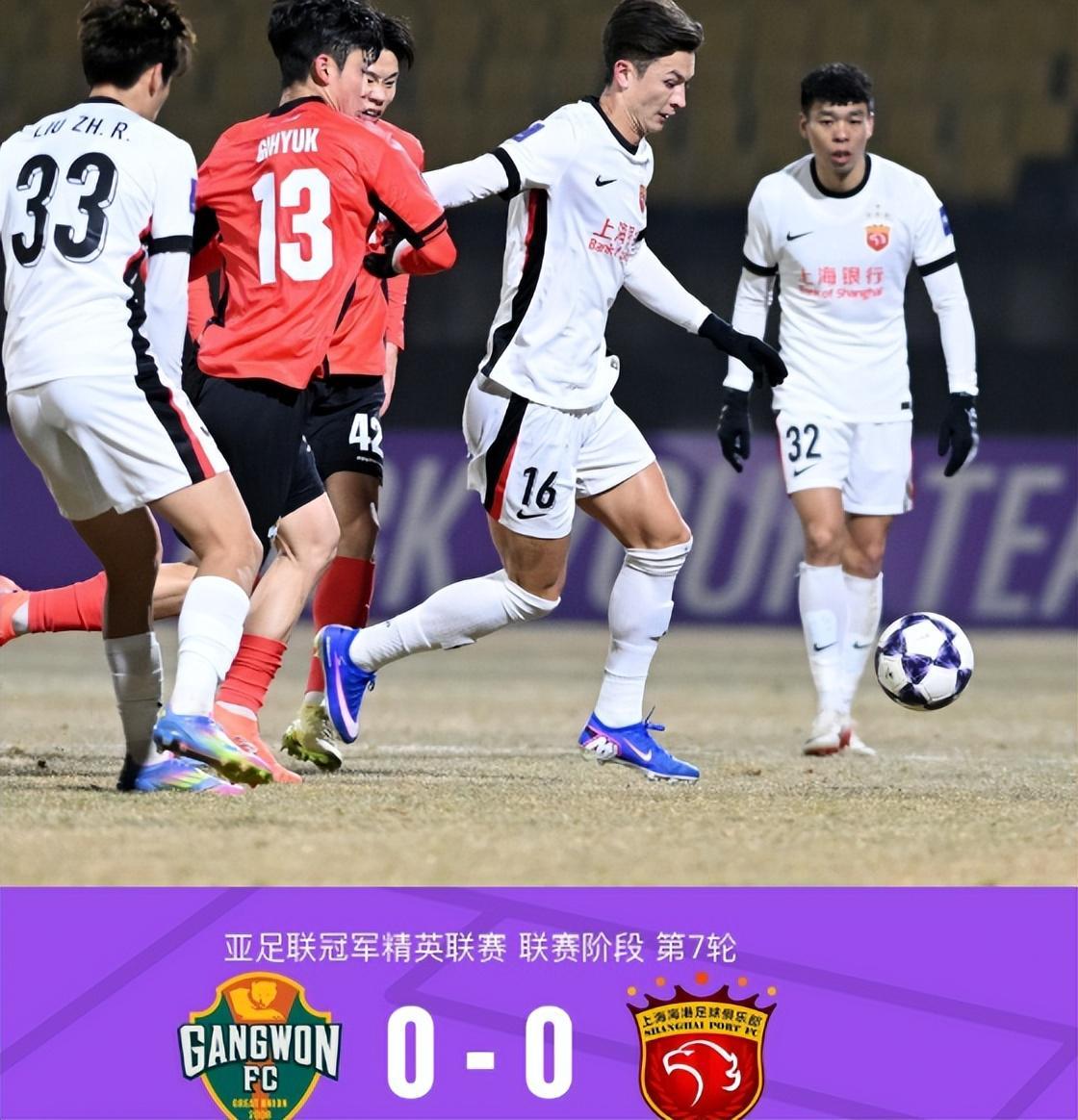 北京时间2月11日晚,亚冠精英联赛联赛阶段第7轮,上海海港客场挑战韩国球队江原。此役,上海海港几乎有一半主力无法出战,场面上被对手全面压制,好在,上海海港本场的防守还算稳健,经过一场90多分钟的鏖战过后,最终0:0逼平对手,拿到了一场还算过得去的平局。