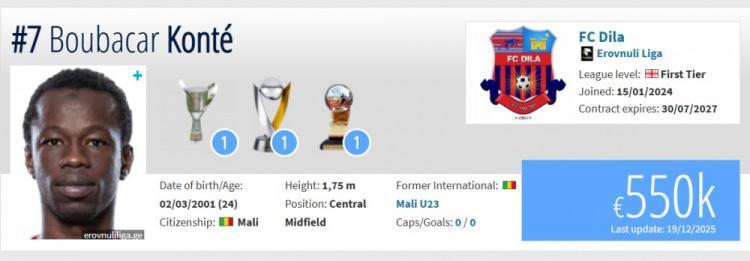 据消息称,现效力于格鲁吉亚甲级联赛哥里迪拉俱乐部的马里中场孔特,已无限接近加盟北京国安,目前转会手续正在办理中,预计本周内就能全部完成。这位25岁的马里籍球员,能胜任前腰、边前卫、中前卫等多个位置,有着北欧青训背景,还随队拿过格鲁吉亚杯和超级杯冠军,看似是一名兼具潜力与实力的多面手。但消息一出,国安球迷似乎并不满意,不看好这名球员能为球队做出贡献。