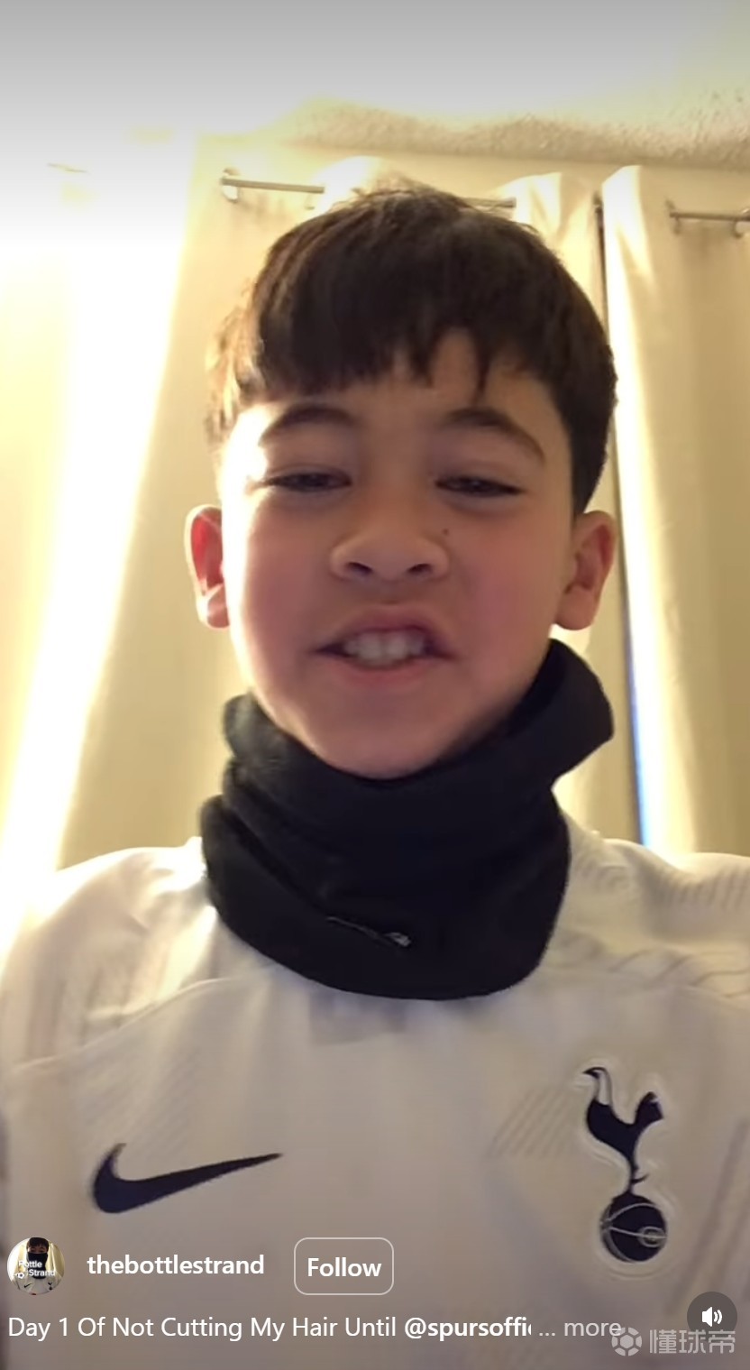这位小球迷在社交媒体写道:“从今天起开始打卡:热刺在英超赢下一场比赛前,我绝不剪头发。现在是第一天。(刚才说错成5场了,其实是1场)。”