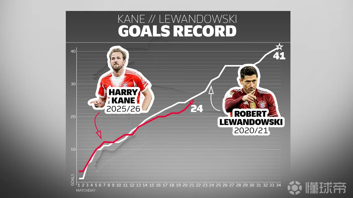 凯恩本赛季至今已打入24球。那个令人难忘的2020/21赛季