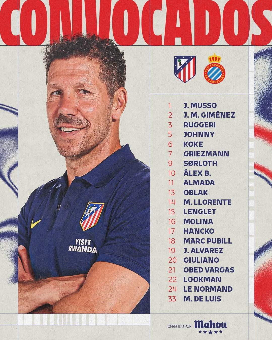 马竞战西人大名单:阿尔瓦雷斯领衔,门多萨、冈萨雷斯缺阵