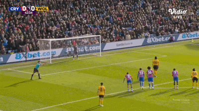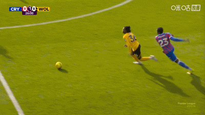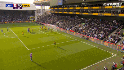 第90分钟,盖桑临近比赛结束破门,水晶宫1-0狼队