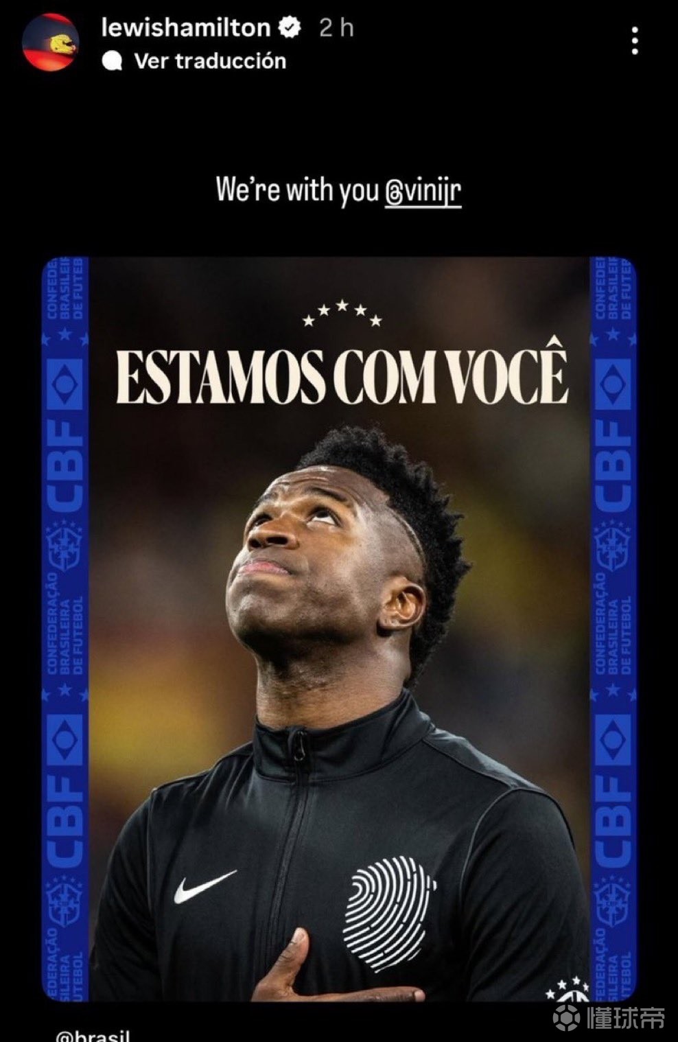 汉密尔顿发帖声援维尼修斯:我们与你同在