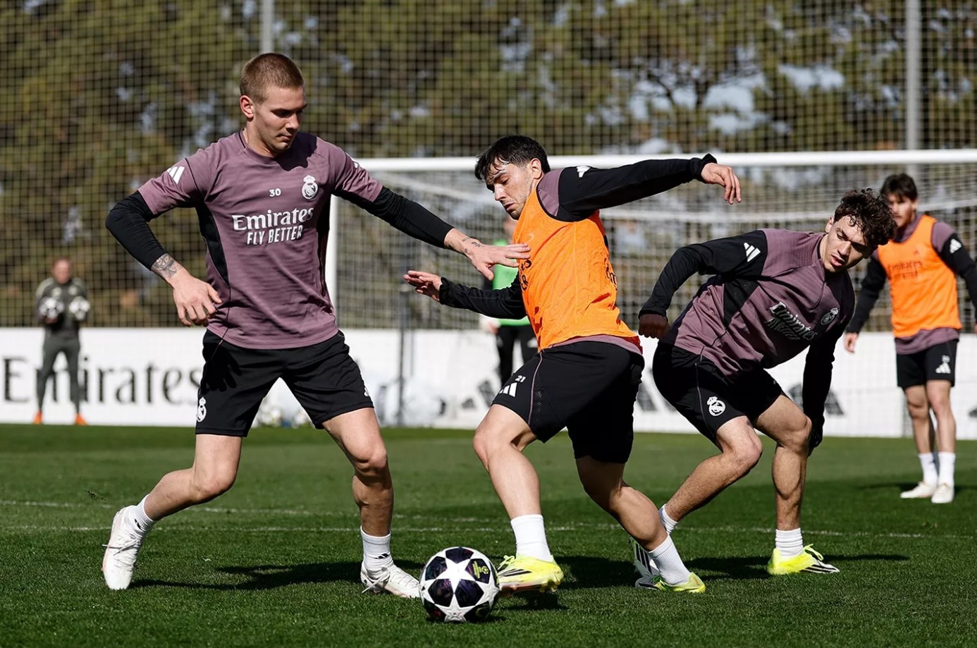 对阵奥萨苏纳的首发球员在皇家马德里训练基地的健身房进行了恢复训练。其余队员则先在球场上进行了热身和传球练习。之后,他们进行了跑步训练和位置感训练,并练习了射门技巧。训练最后以一场小场比赛结束。罗德里戈参加了全队训练,而米利唐和贝林厄姆仍在进行恢复。