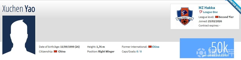 北京时间2月25日,德转更新,冯刚、么旭辰、张恩祈加盟俱乐部,三名球员都为自由转会。