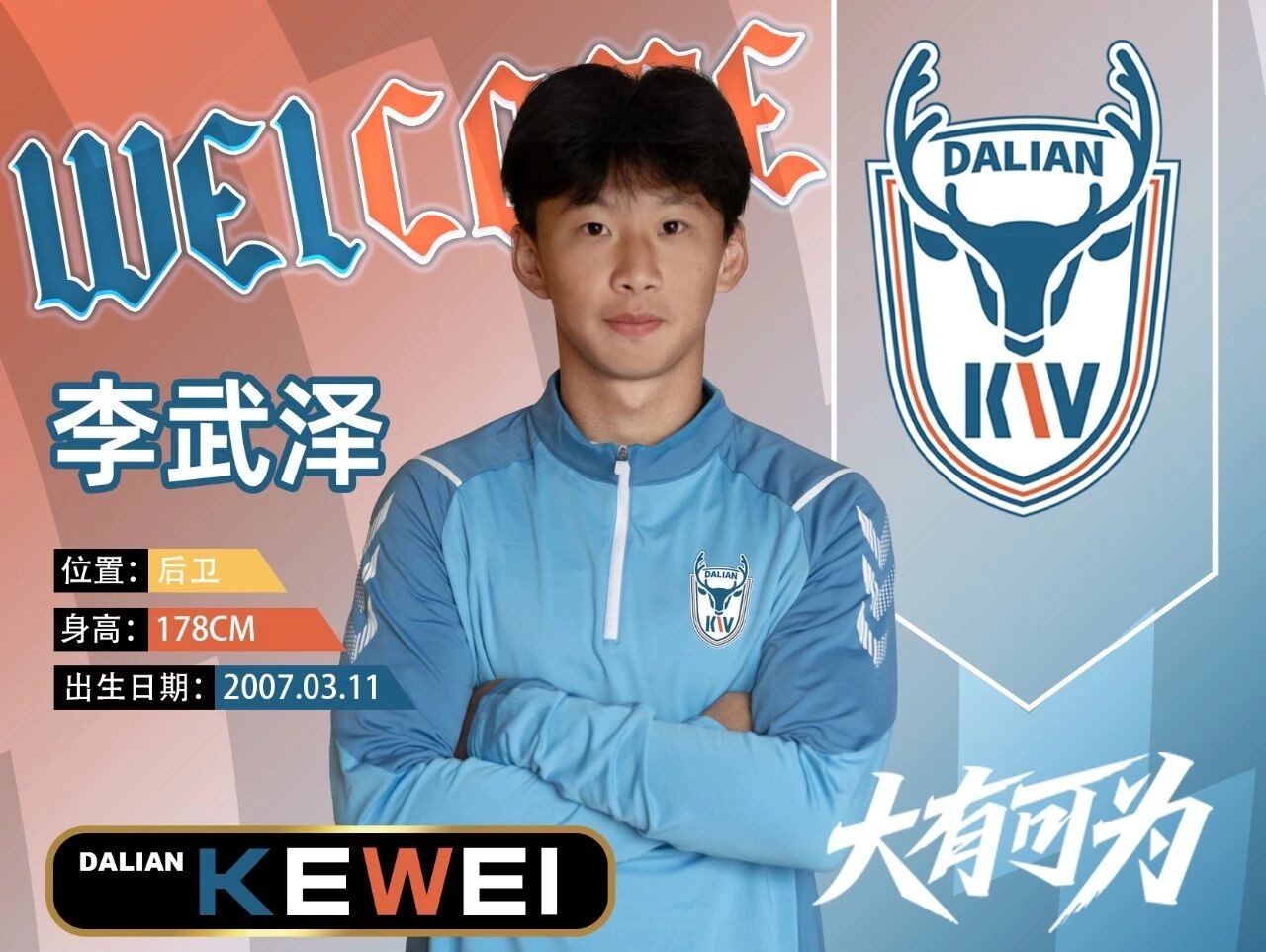 经与球员本人友好协商并达成一致,大连籍年轻球员李武泽,正式回归家乡,加盟大连可为足球俱乐部!