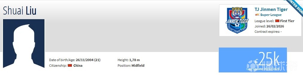 德转更新,上赛季效力于赣州瑞狮的前锋刘帅、上赛季效力于中冠四川顶耀中藤的中场蔡承峻自由转会天津津门虎。