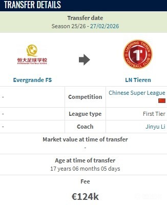 北京时间2月27日,德转更新,辽宁铁人约100万人民币签下恒大足校17岁后卫张洪福。