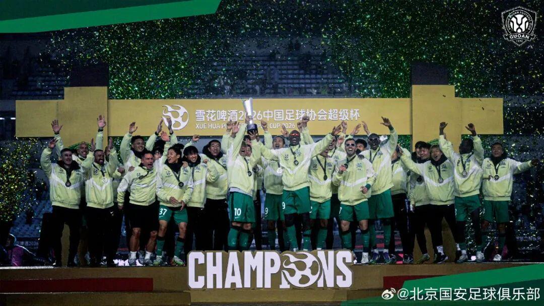 特约撰稿/宋词3月1日,南京奥体中心,2026中国足协超级杯巅峰对决落下帷幕。北京国安凭借达万的世界波与曹永竞锁定胜局的进球,以2比0完胜上海海港夺得冠军。这场胜利让国安时隔22年捧起队史第三座超级杯冠军奖杯。本场比赛也是新任主帅蒙哥马利上任后第一场比赛,首秀即夺冠。此役更是国安完成阵容换血、战术革新后的一次全新亮相。可以说,这个超级杯冠军给国安的新赛季中超征程开了个好头,不过在球队、球迷开心的同时,俱乐部则保持着冷静的头脑,国安内部明确表示,千万不要盲目乐观,一定要稳扎稳打、步步为营。